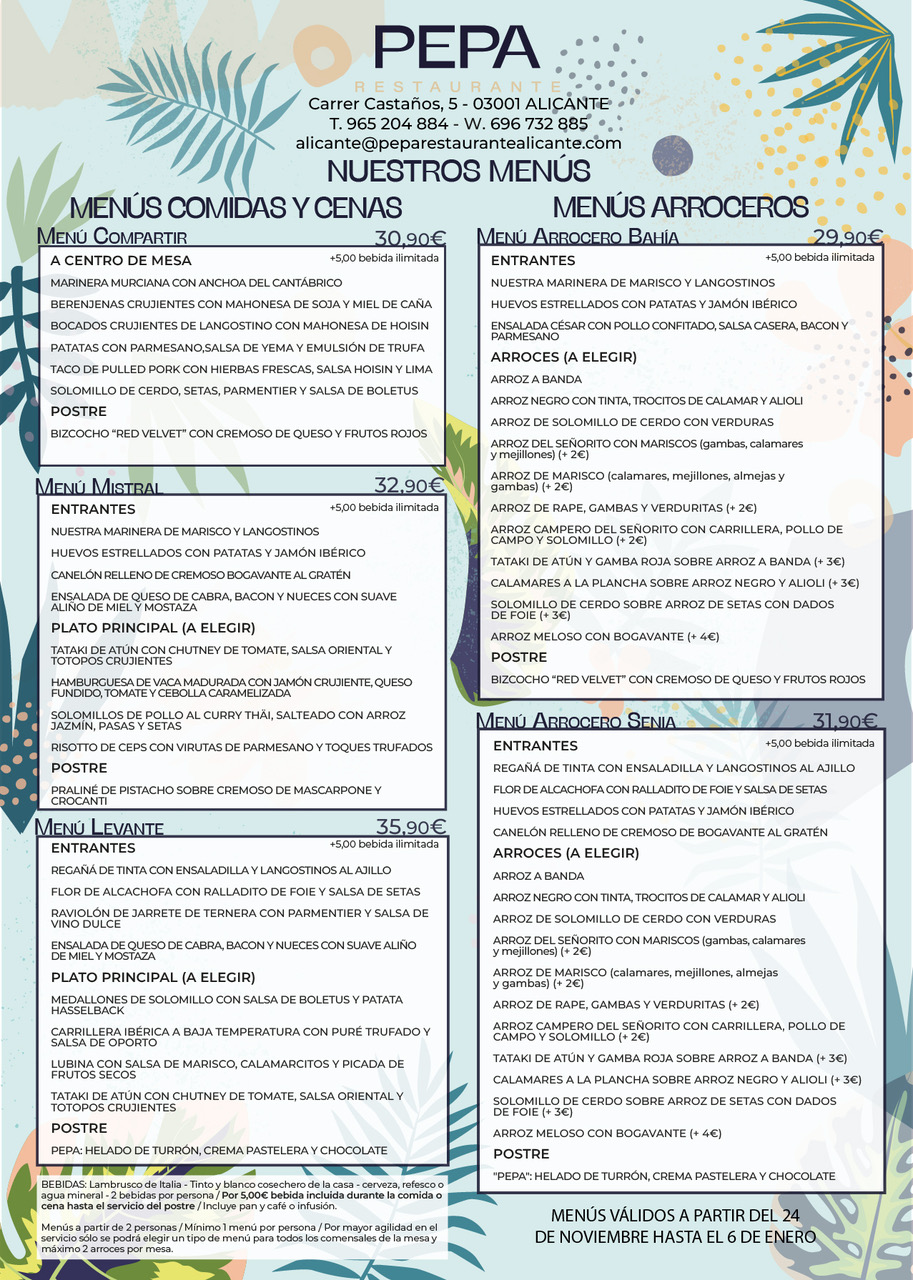 - En las reservas de la comida de navidad y año nuevo, se aplicará la penalización si se cancela la reserva dentro de las últimas 72h.